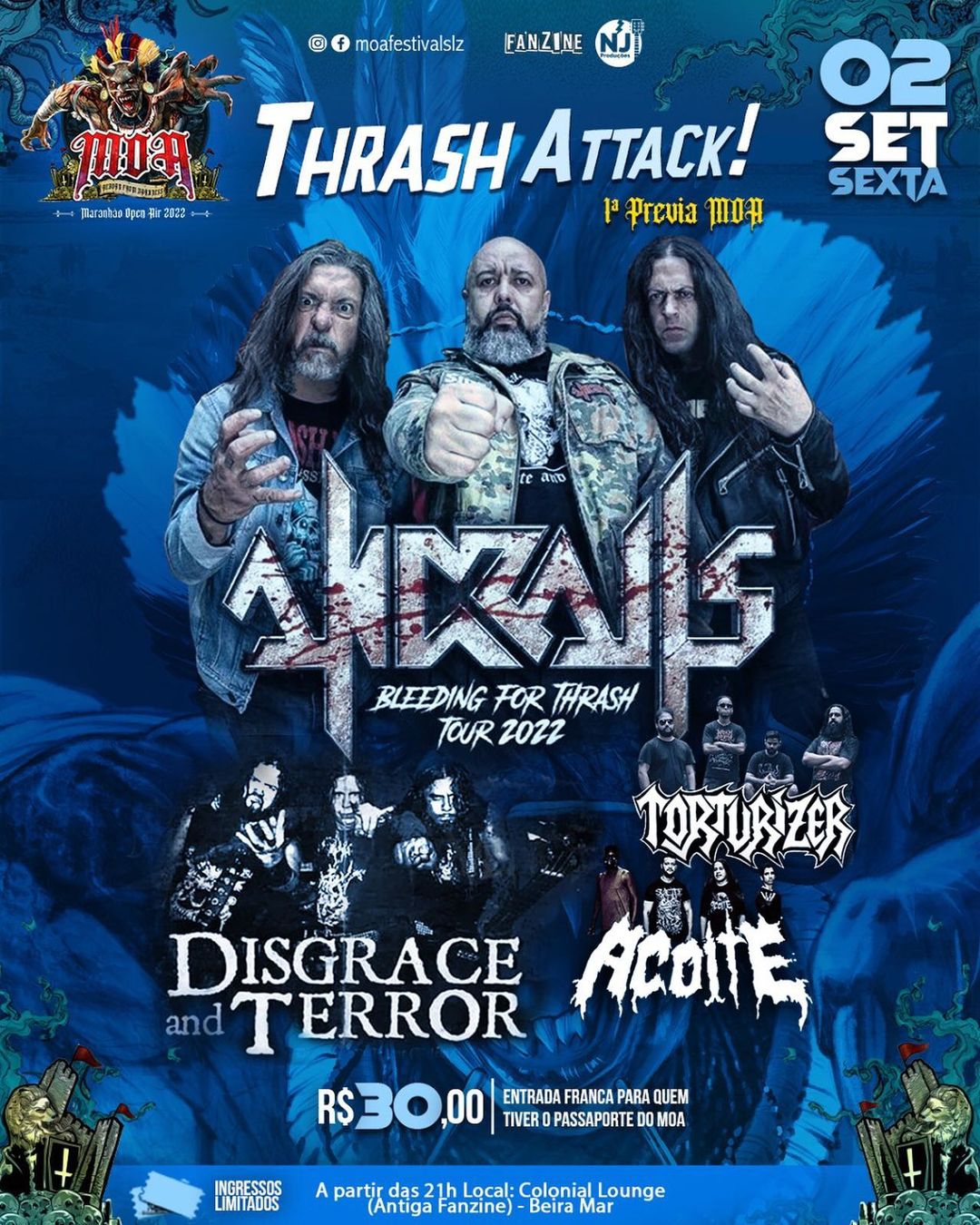 Trata-se do ‘Thrash Attack’, que colocará a banda ao lado de Andralls, Disgrace and Terror e Açoite, em evento que abrirá as portas de forma oficial para o ‘Maranhão Open Air’, confira o cartaz: