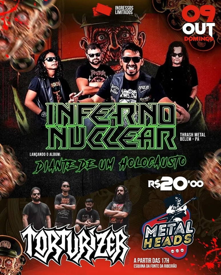 Neste domingo, dia 09/10 a partir das 17 horas, a banda estará no Metalheads, em São Luís/MA, onde dividirá palco com os paraenses do Inferno Nuclear, que estará lançando seu novo álbum “Diante De Um Holocausto”, confira o cartaz: