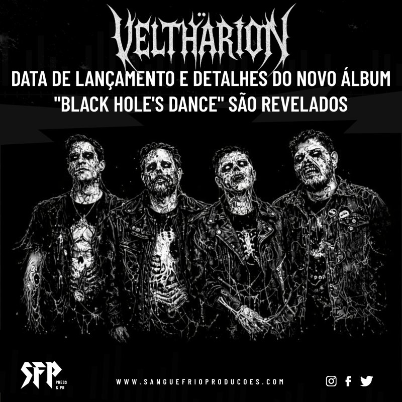 O grupo de Death/Black Metal VELTHARION confirmou o lançamento mundial de seu novo álbum, "Black Hole's Dance", para o dia 17 de abril de 2026 em todas as plataformas digitais. O trabalho, que sucede o impactante single "Sustained By Suffering", mergulha em temáticas que fundem o misticismo universal ao niilismo existencial sob a chancela da Sangue Frio Records.