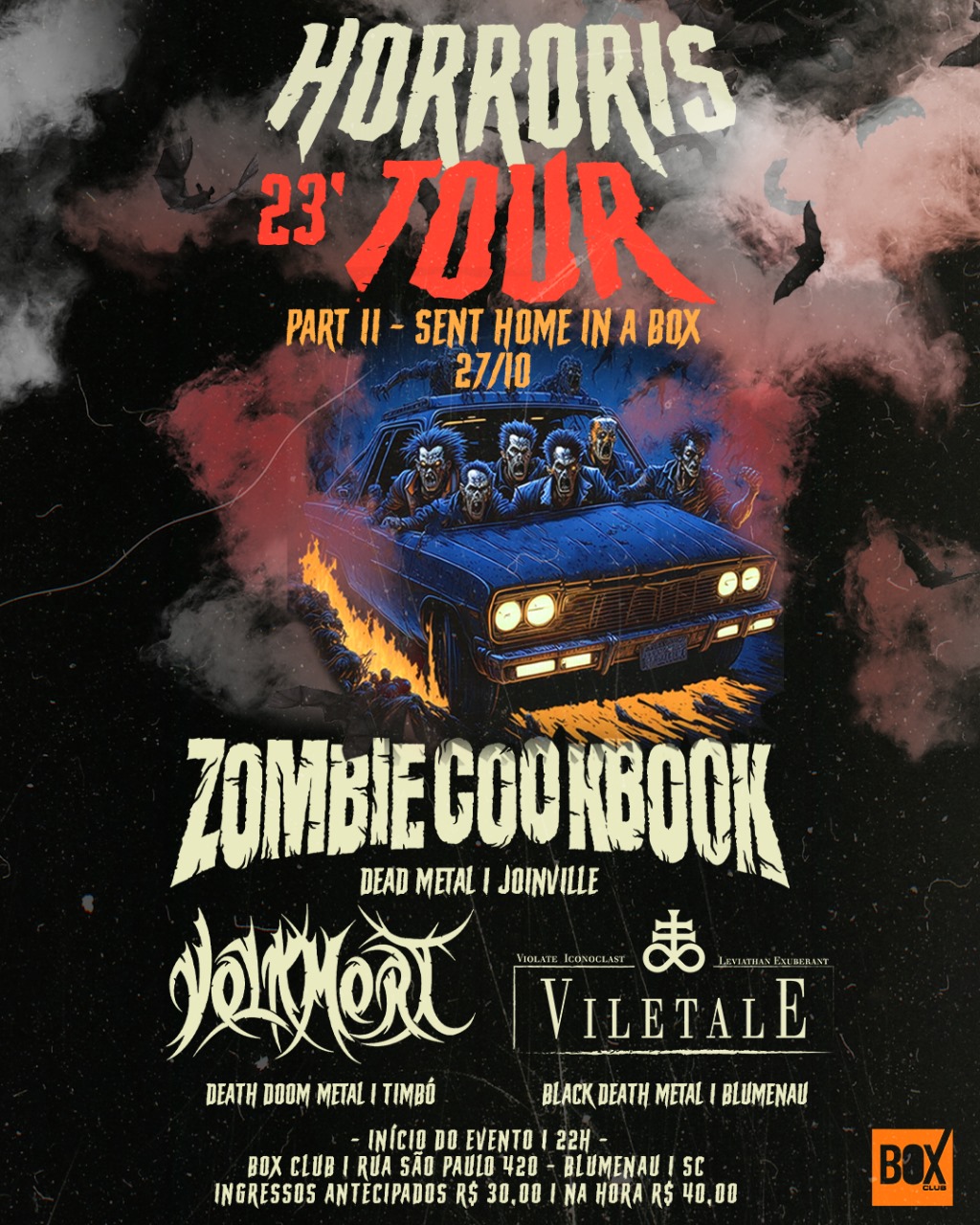 Em paralelo, o VOLKMORT já está em contagem regressiva para o show de lançamento oficial a de “Fallen In The Bloody Field”. Este grande e importante evento acontecerá no Box Club em Blumenau/SC, dia 27/10/2023, e contará também com Zombie Cookbook e Viletale. Confira abaixo o cartaz e serviço completos para mais informações: