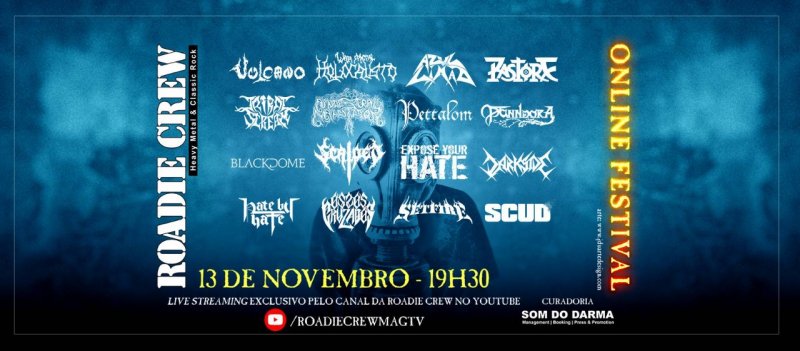 O festival, que irá ao ar neste fim de semana, dia 13/11/2020, a partir das 19:30 horas pelo canal oficial da Roadie Crew no YouTube, conta com um cast de peso, onde os santistas dividirão espaço com nomes como Azul Limão, Holocausto, Panndora, Pastore e muito mais, confira: