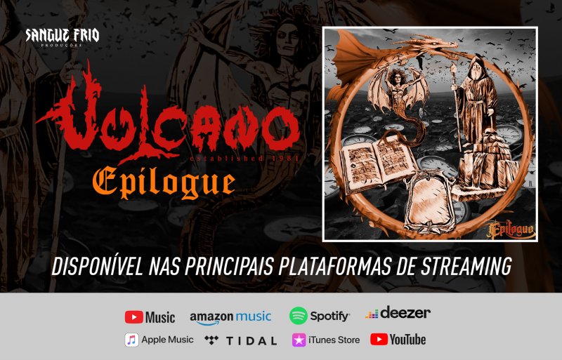 O novo e bem recebido álbum “Epilogue” da lenda do Metal Extremo VULCANO finalmente teve seu lançamento oficial. O trabalho ingressou, no dia 30/04/2024, em TODAS as principais plataformas de streaming do mundo, podendo ser encontrado com facilidade em seu serviço mais utilizado acessando o ListenTo oficial do disco (disponibilizado pela assessoria de imprensa SFP – Press & PR) CLICANDO AQUI.