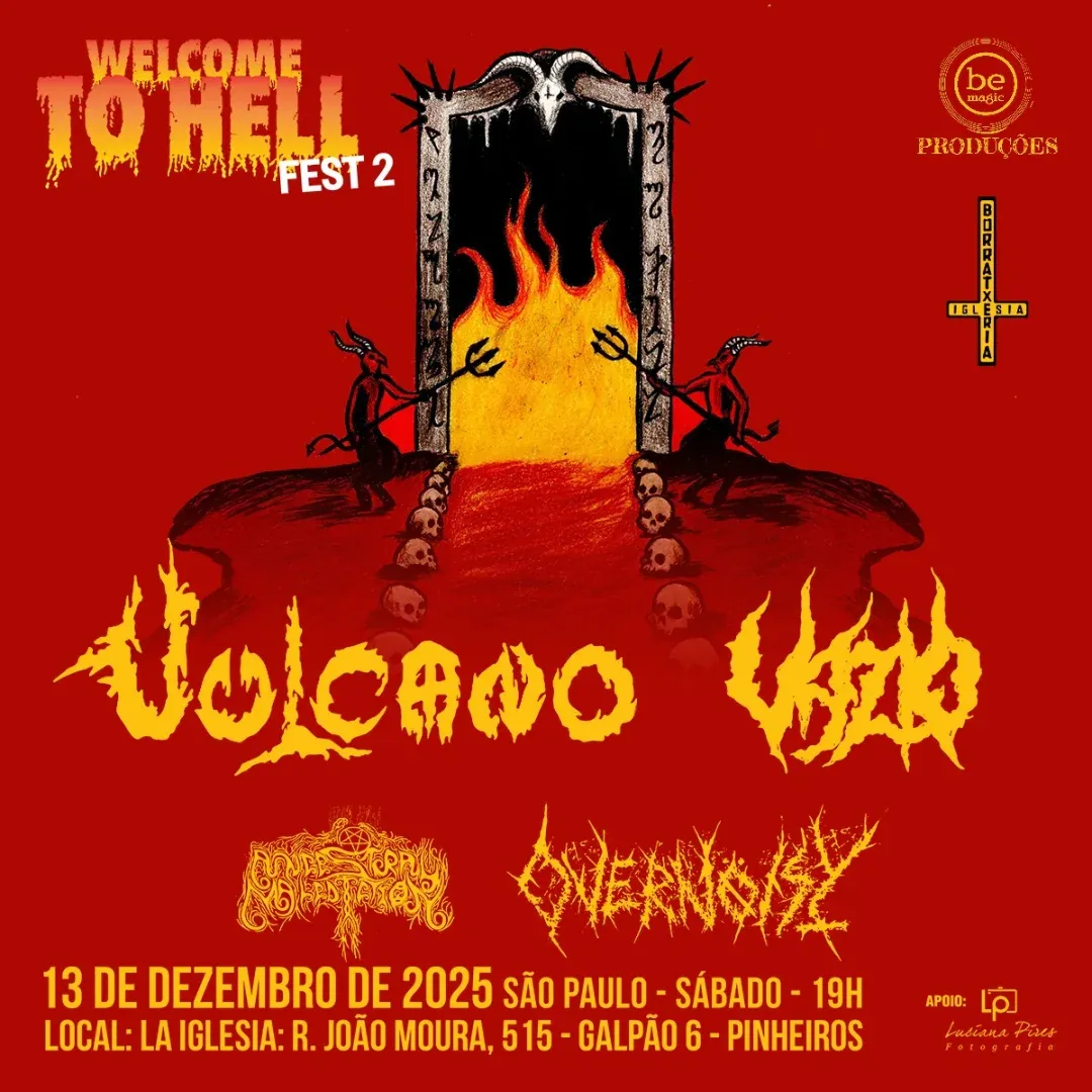 Mesmo focado na divulgação da sua aguardada turnê europeia, “The Return! European Tour 2025”, o VULCANO segue com presença garantida em eventos de peso no cenário nacional. A banda foi anunciada como headliner da segunda edição do ‘Welcome To Hell Fest’, que acontece no dia 13 de dezembro de 2025 (sábado), no tradicional La Iglesia, em São Paulo/SP.
